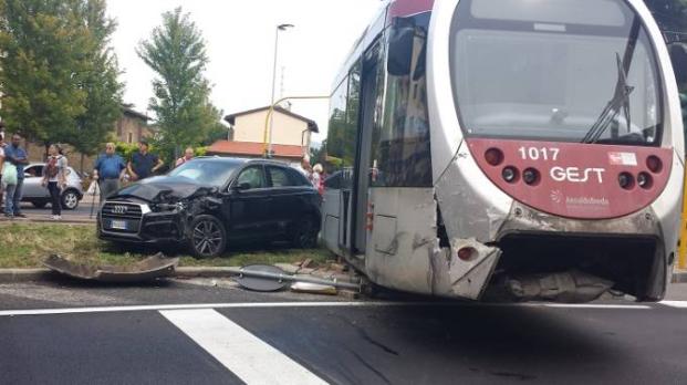 Uno scontro tra un'auto ed una moto, con quest'ultima finita sui binari della tranvia, ha bloccato la T1 Leonardo per circa 20 minuti, al fine di consentire i soccorsi e i rilievi della Polizia Municipale.